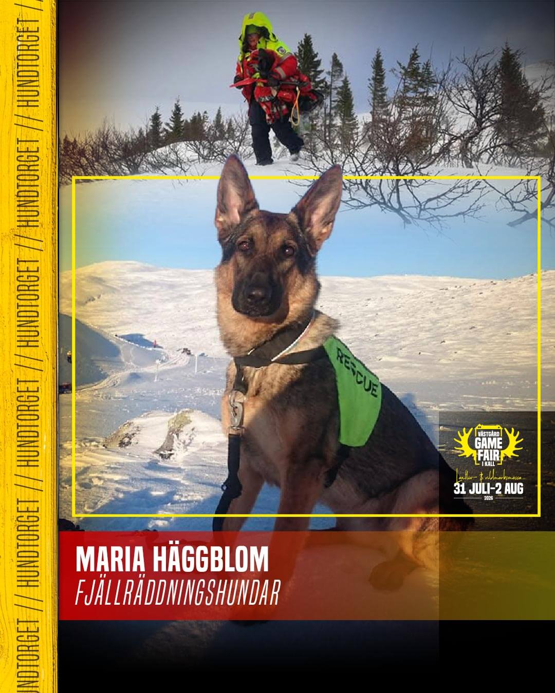 På Hundtorget visar fjällräddningshundar under ledning av Maria Häggblom hur de tränas för att hitta människor i svår terräng. Det handlar om hundar som kan söka av stora områden snabbt, läsa vittring på långa avstånd och arbeta i miljöer där människor har svårt att ta sig fram.